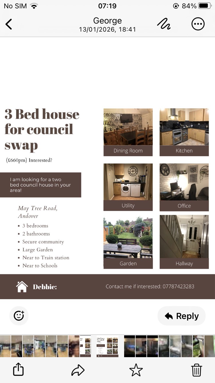 I have a 3 bed house, seperate dining room, utility and office. Large garden. Non estate.