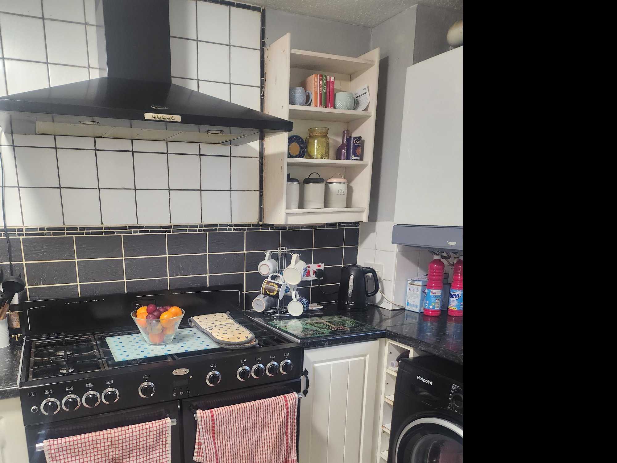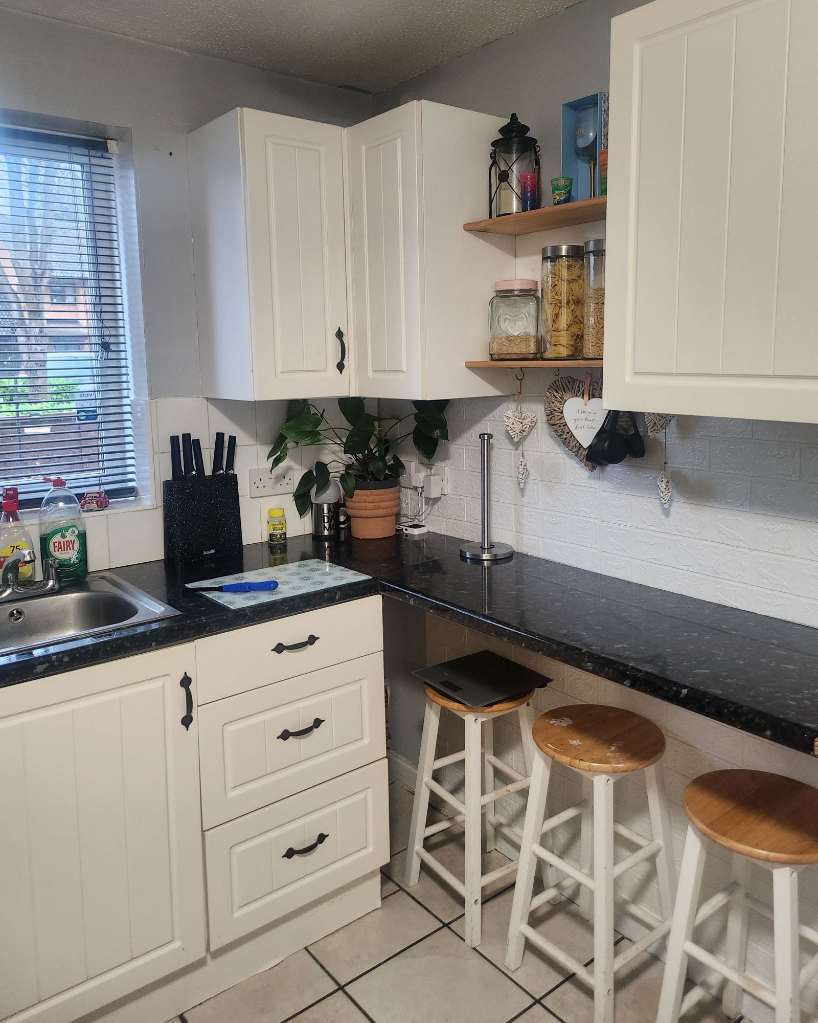 we have a 4 bedroom house 3 double rooms 1 box room, downstairs wetroom and upstairs shower room, nice size garden, parking outside for 2 cars and a fenced off front garden.