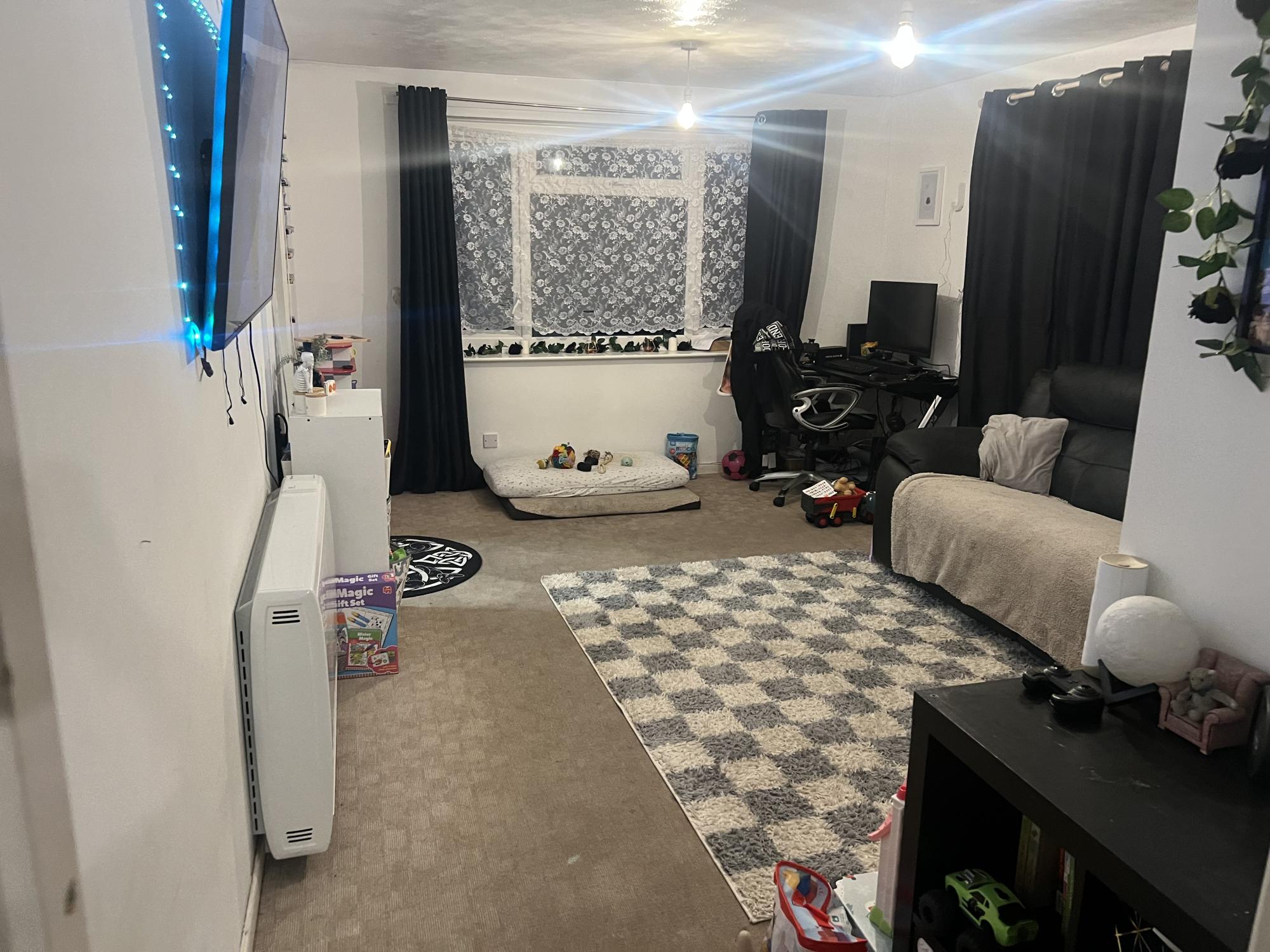 Ground floor flat with garage . 2 large bedrooms one being a king size and other a medium/large single ( fits double) , nice open entrance way with storage cupboard , wetroom , large living room with two large windows which allow lots of natural light in with a view of the car park and garden area . There are bus stops, shops, doctors , pharmacy , community centre , church and cafes all within a 5 minute walk, looking for a 2bed property with a garage or road access to back garden , ideally have a bath also. Feel free to ask any questions also welcome to come a view , open to multiswaps also. Please note photos are old from when I moved into the property (2024) both bedrooms are now turquoise and kitchen tiles are dark grey , I have new photos of living room and smaller bedroom but it won?t allow me to upload them . Property Type: flat Bedrooms: 2 bedrooms County: dorset Town: Upton Property Type wanted: house Bedrooms wanted: 2 bedrooms County Wanted: dorset Town Wanted: Wimborne Minster2 bed ground floor flat uptom