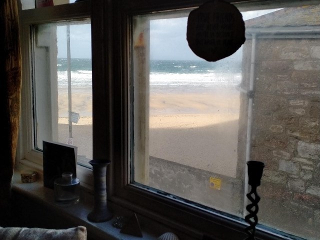 2 bed beachfront non estate flat opposite Porthmeor Beach. Sash windows, 12 by 11 sitting room, galley kitchen, wet room with walk in shower, 1 double bedroom, 1 single, overlooks the beach and coast path. Small rear balcony. Washing lines over shared rear yard. Suit single person or couple. Also have a large 3 bed house (Cornwall Housing) as part of a multiswap in Mount Hawke near Truro.