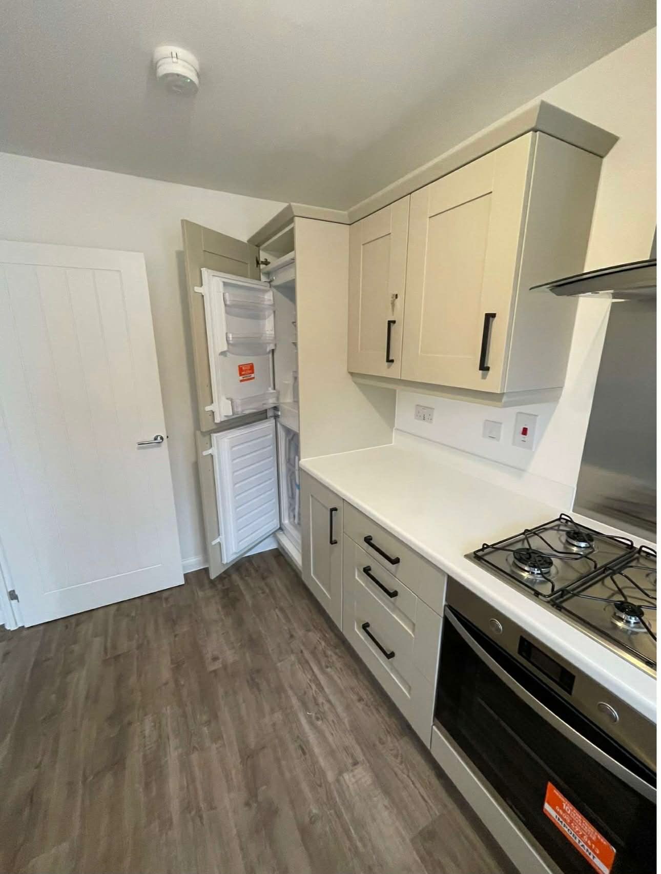 over 50s flat, single or couple, no children! Lovely upstairs property with open plan living area, 1 bedroom, with resident/visitor parking, shared back garden, energy effiency band A triple glazing, new build 2018 HA property