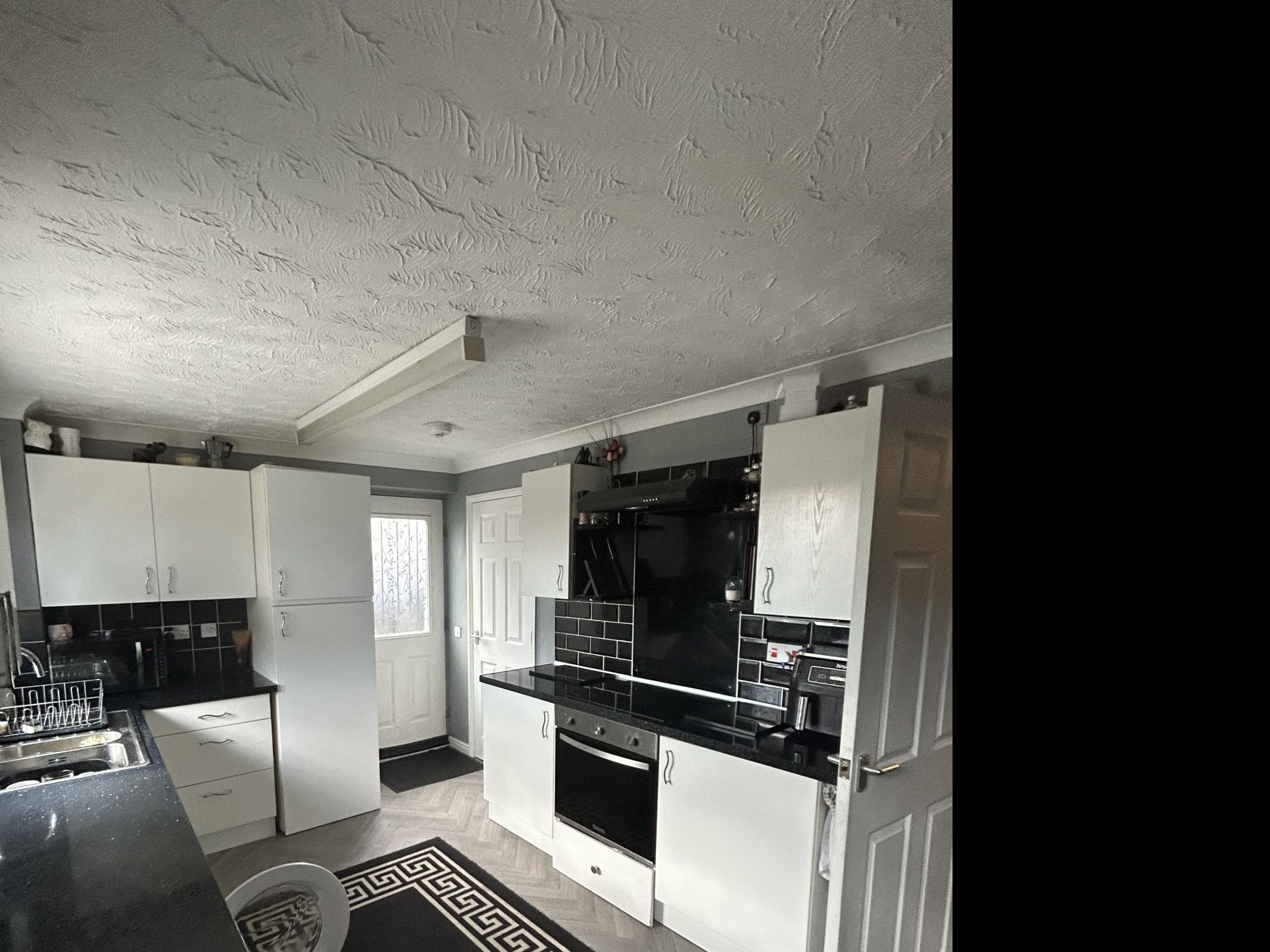 i have a 3 bedroom end house with toilet downstairs and a bathroom/toilet upstairs 2 bedrooms can fit double beds and one small room back garden leads of living room all rooms have recently had new laminate flooring except kitching and stairs and landing there is parking right next to property as we are house on the end my husband parks his work van and our family car there we