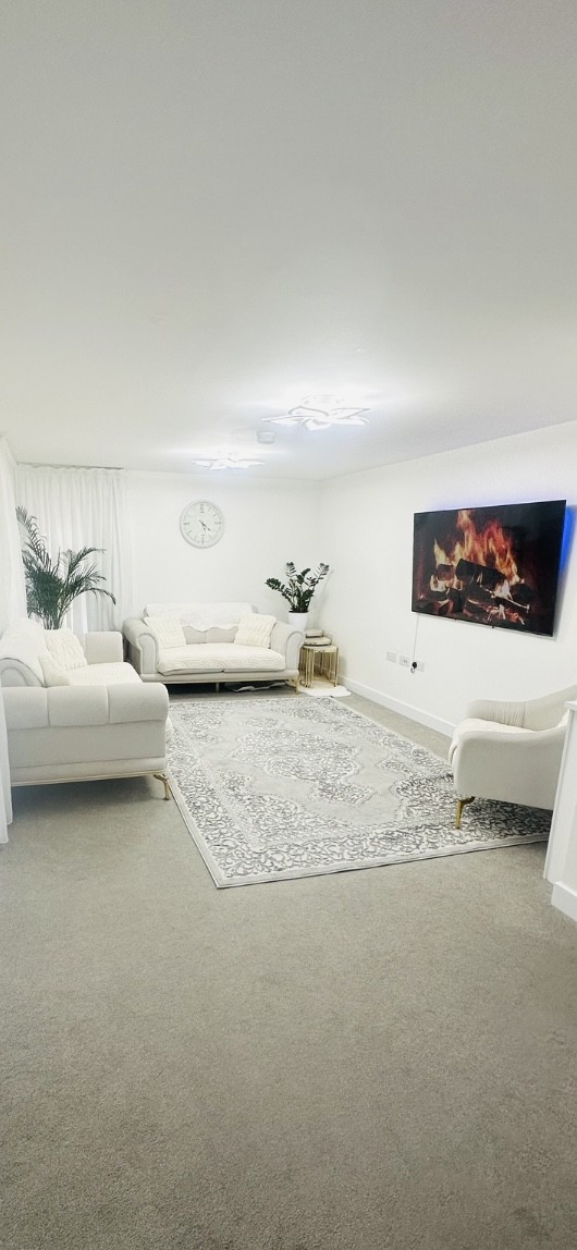 2 bedroom ground floor flat -balcony - spacious open plan living room with kitchen which has space for dining table - no stairs to enter the flat - big bathroom - master bedroom with suite - parking space , with plenty of visitor parking spaces - quite area / good neighbourhood - shared storage room - a lot of natural sunlight - no fixing needed , freshly painted and has flooring