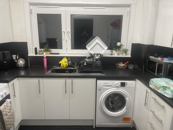 2 bedroom flat in very nice area got balcony only one up just moved last year 2 bottom flats bought quite people and very Push area. ... ... ... ..... K l. .... .... Flat it's nice just need some painting nibours they alright people Street quite 5 mom away from calderwood shop's